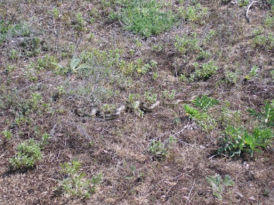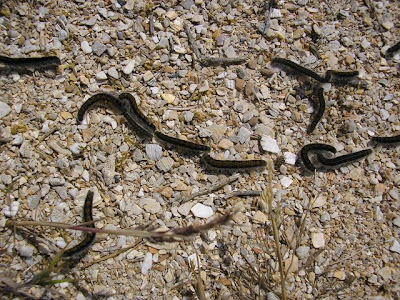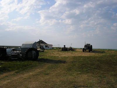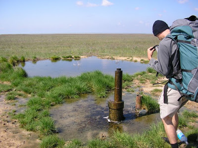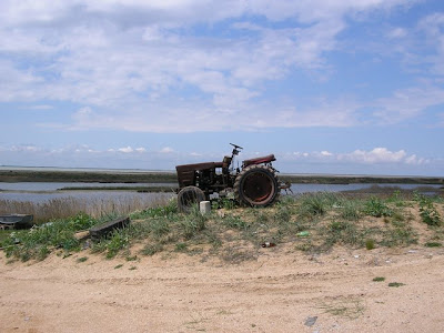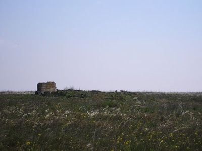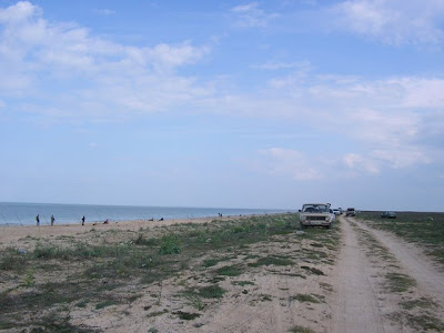Примерно в километре перед селом у нас кончилась пресная вода, ее мы расчитали в целом правильно, в селе нашелся зашифрованый магазин, где мы узнали что автобус в село приходит только во вторник. Посидев на травке решили добираться до Феодосии и оттуда рулить в Симферополь и Донецк, повтыкали на карту и двинулись, мужык на красной хонде видимо глядя на наши лица, а может ему и одного моего лица хватило предложил подвезти немного, согласились и приехали в Семисотку. Оттудова планировалось пешком выйти на трассу Керчь-Феодосия, ну и вобщем мы пошли. Мимо проносились машынки а мы шли-шли, и дошли до кажется северо-крымского канала, из которого воду пьет Керчь