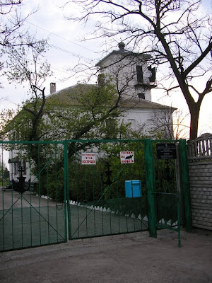Первый чек-пойнт, он же оказался и последним, но не будем забегать вперед. Это убогое здание знаменитый на весь мир генический маяк, проходим мимо. Надпись на воротах – “Собаки-людоеды”.
